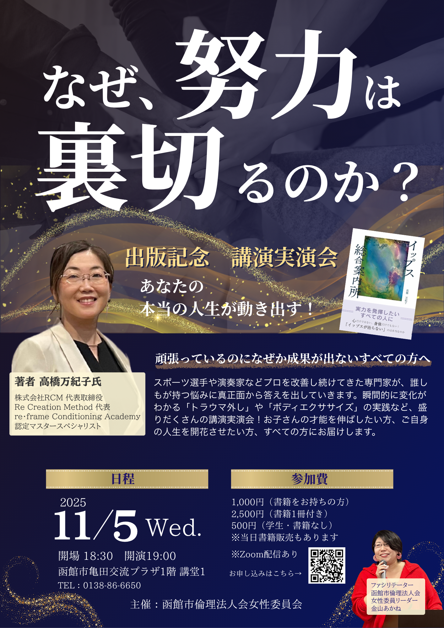 函館市倫理法人会 女性委員会主催のナイトセミナー(出版記念講演実演会)を開催いたします。