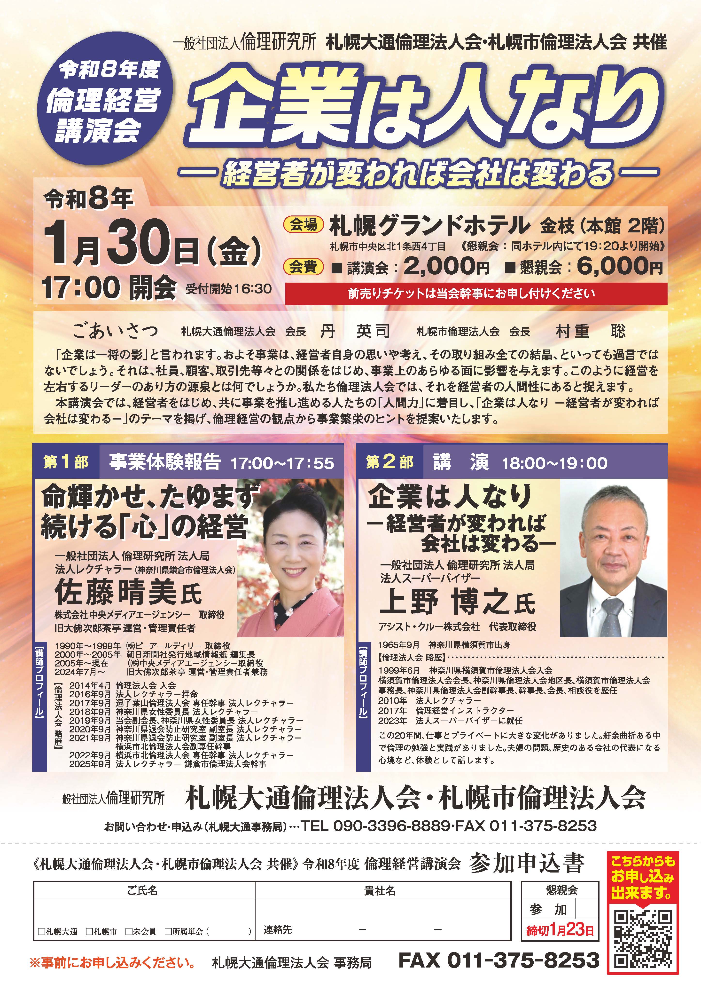 令和8年度 札幌大通倫理法人会・札幌市倫理法人会 共催 倫理経営講演会