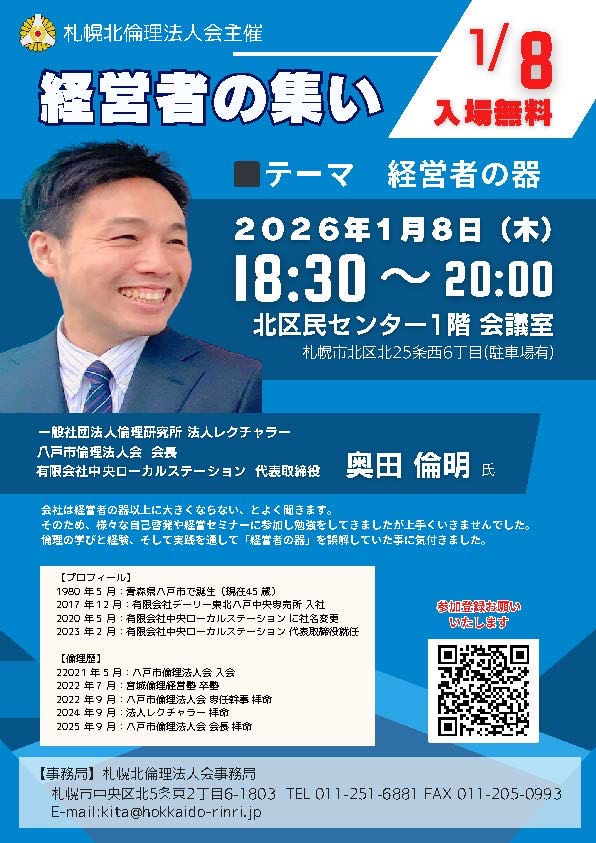 | 主催 | 札幌北倫理法人会 |