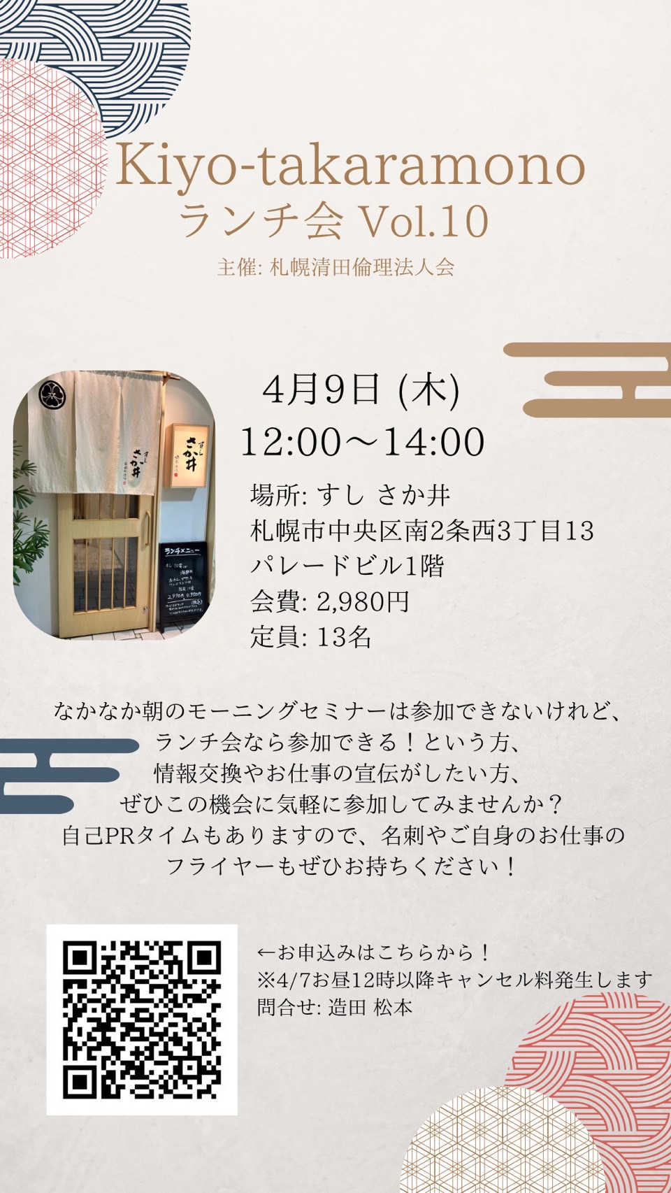 HOME > イベント・行事カレンダー > Kiyo-takaramono ランチ会 Vol.10