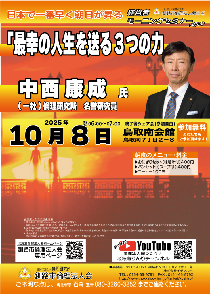 第262回 釧路市倫理法人会経営者モーニングセミナー+Web「最幸の人生を送る3つの人」