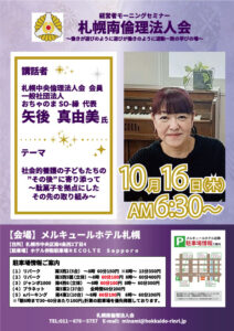 札幌市南倫理法人会第327回モーニングセミナー「社会的養護の子どもたちの”その後”に寄り添って〜駄菓子屋を拠点にしたその先の取り組み〜」