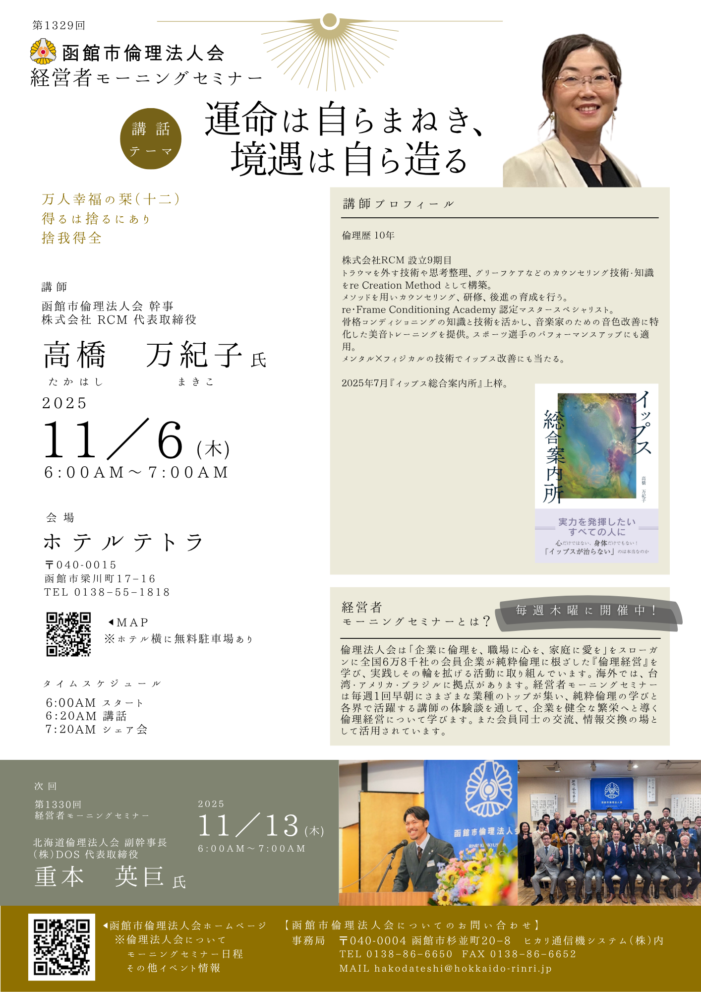 2025年11月6日 函館市倫理法人会モーニングセミナー運命は自らまねき、境遇は自ら造る