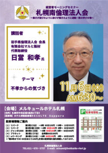 札幌市南倫理法人会第330回モーニングセミナー不孝からの気づき