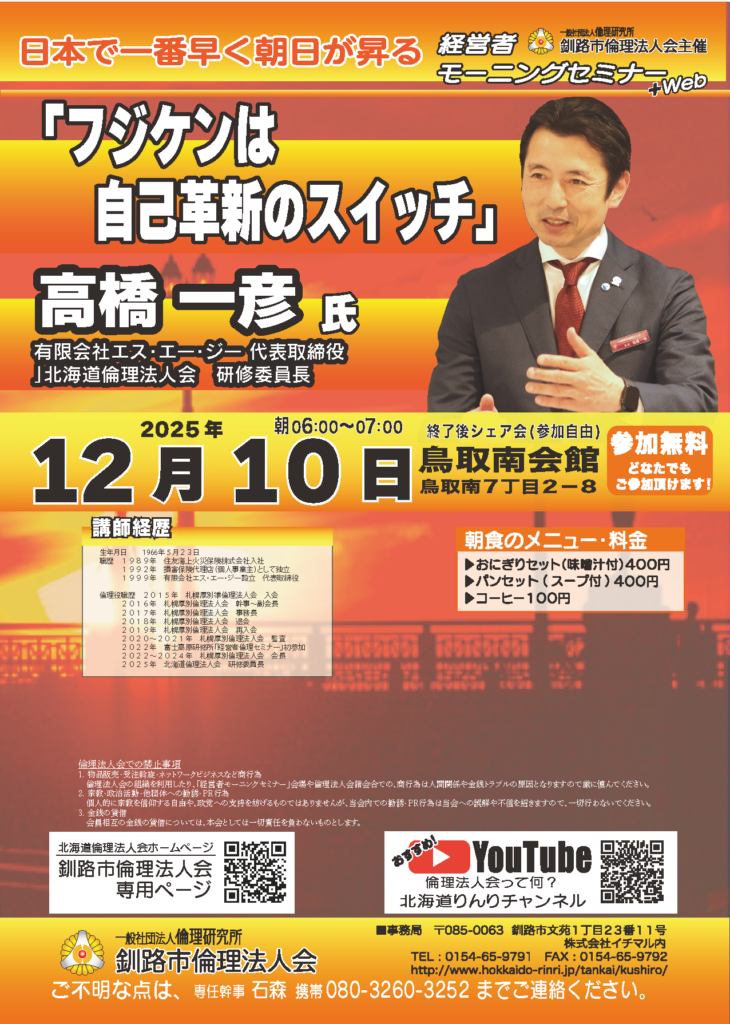 第271回 釧路市倫理法人会経営者モーニングセミナー+Webフジケンは自己革新のスイッチ