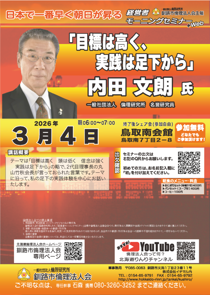 第281回 釧路市倫理法人会経営者モーニングセミナー+Web
