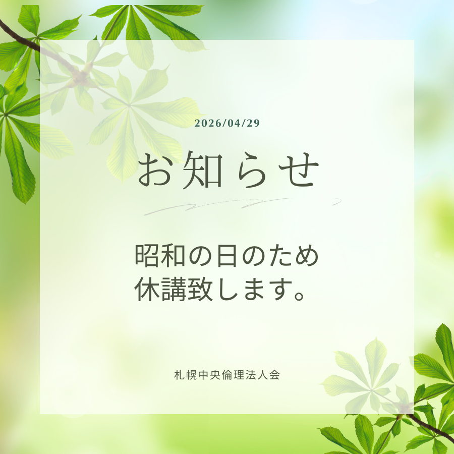 4月29日 札幌中央 経営者モーニングセミナー休講のお知らせ昭和の日のため休講致します。