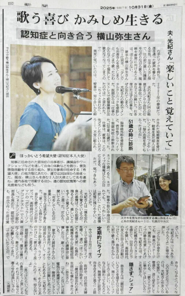 江別市倫理法人会・横山弥生副会長が朝日新聞に掲載されました!