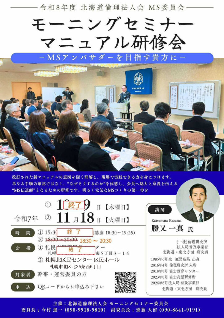 〈会場変更のお知らせ〉モーニングセミナーマニュアル研修会 2025年11月18日(火)