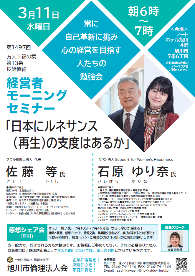 旭川市倫理法人会は28年目に入る、北海道2番目に設立した単会です。