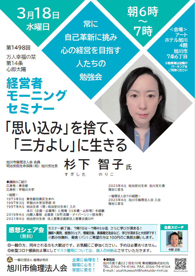 旭川市倫理法人会 会員 明治安田生命保険(相) 旭川支社長