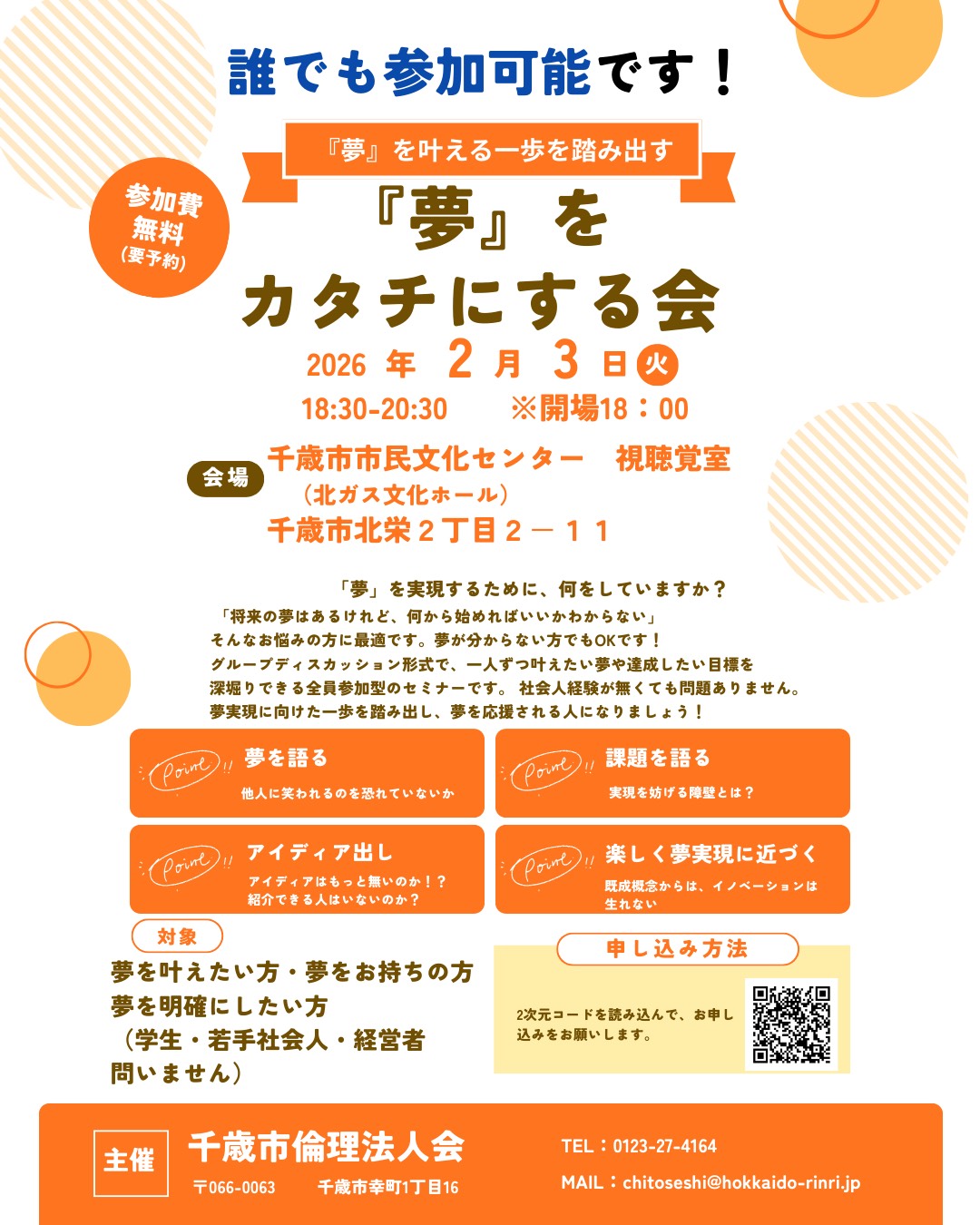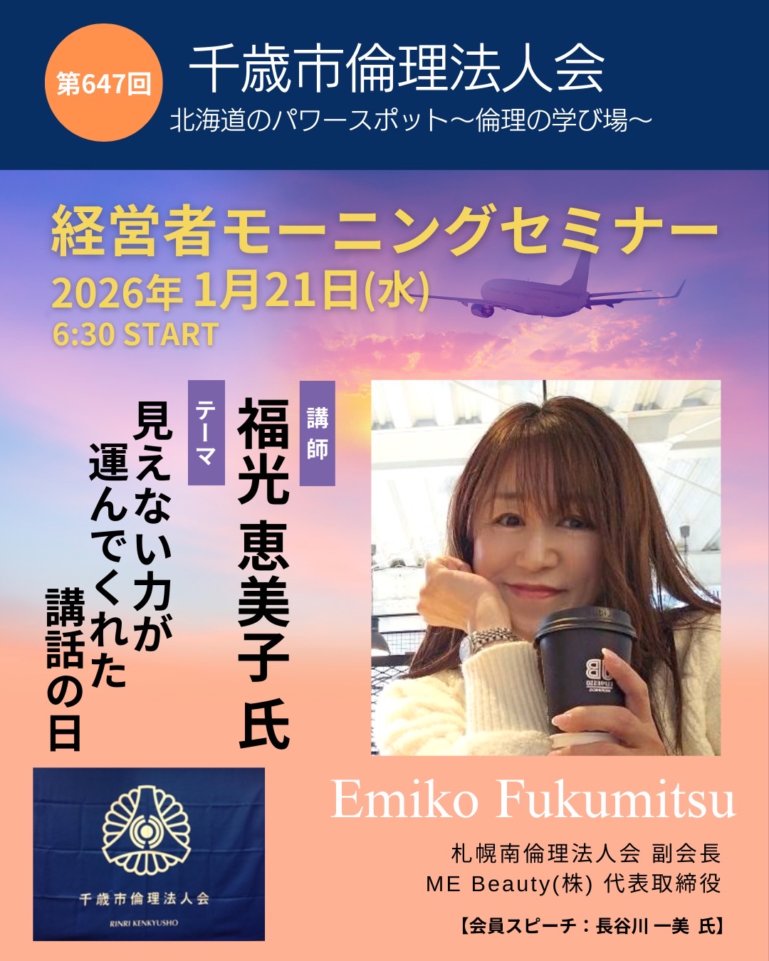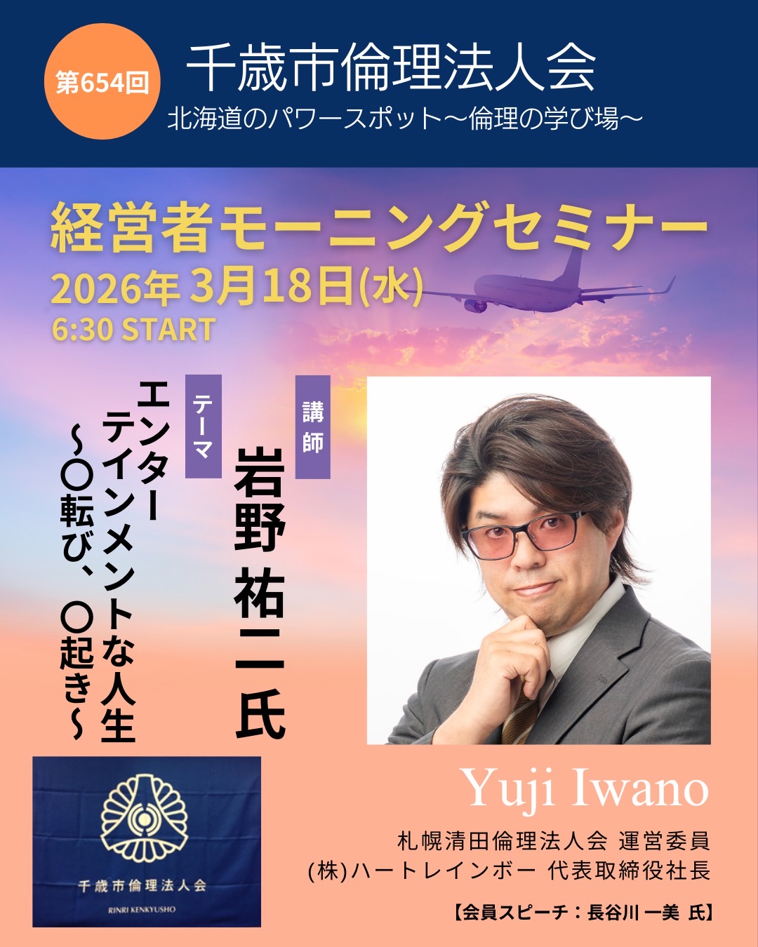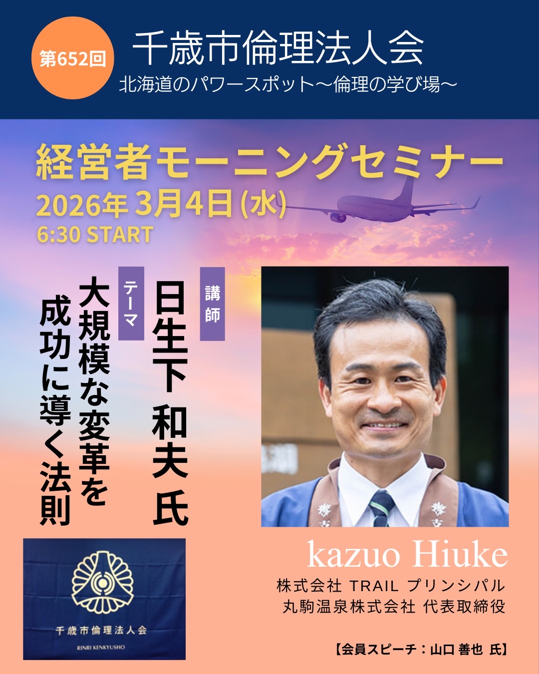 私たち千歳市倫理法人会では、令和8年度も「北海道のパワースポットになる」というスローガンのもと、学び合う経営者の力で地域を元気にする取り組みを行っています。