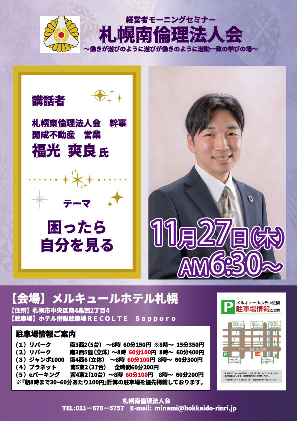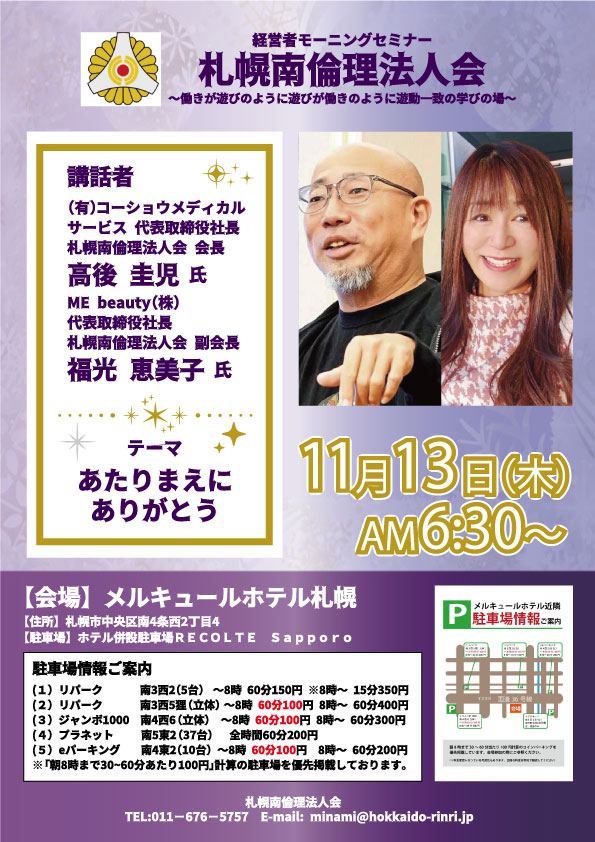 遊動一致の学びの場、札幌南倫理法人会にようこそ!!