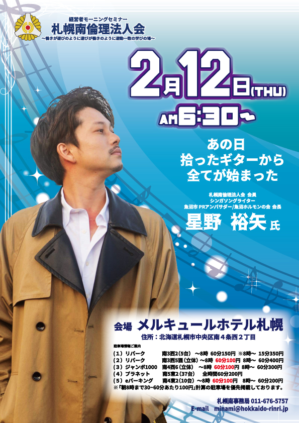 札幌南倫理法人会 会員 ・シンガソングライター・ 魚沼市PRアンバサダー・魚沼ホルモンの会 会長