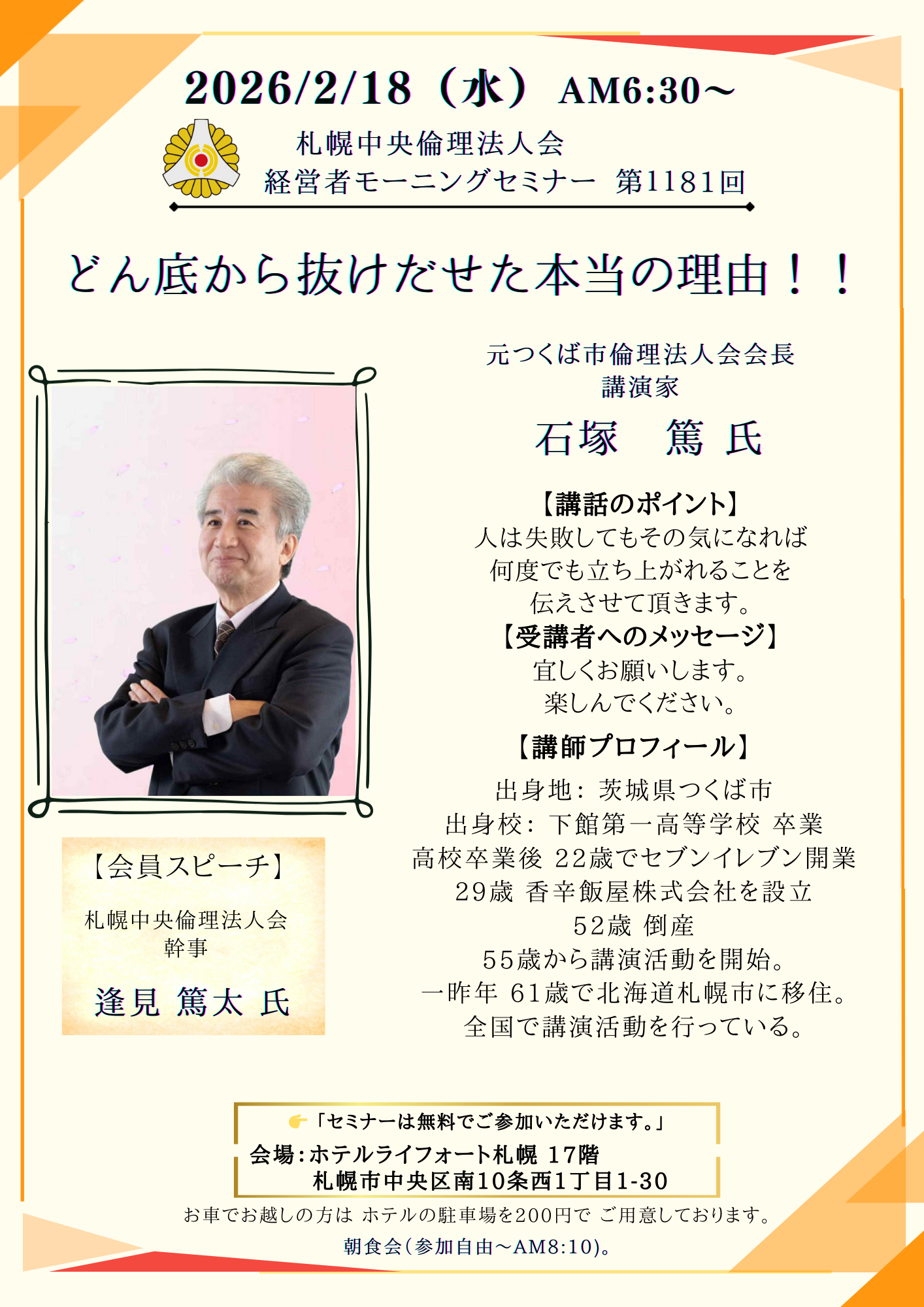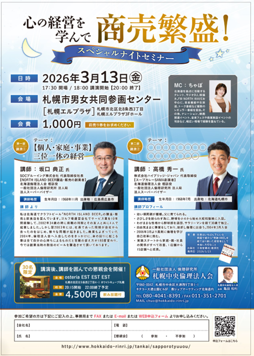 令和8年度 札幌中央倫理法人会【スペシャルナイトセミナー 心の経営を学んで商売繁盛!】